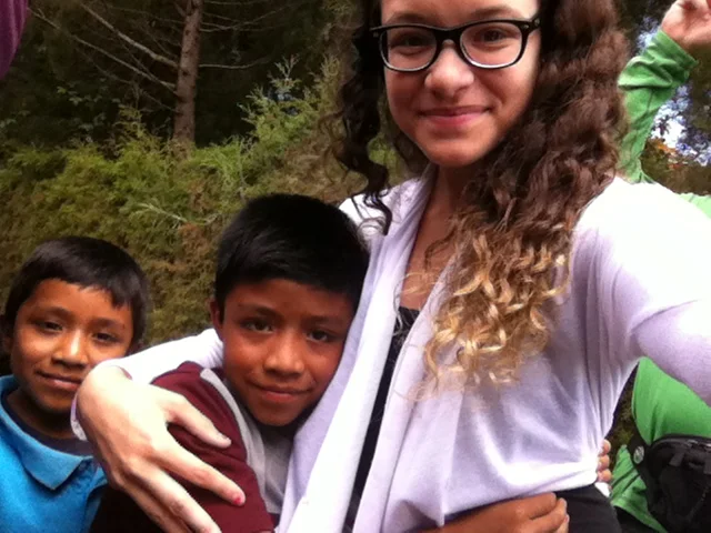 Crystal Gotay, the 2014 Broughton Travel Fellow, with two of her students at a school in Tecpan, Guatemala